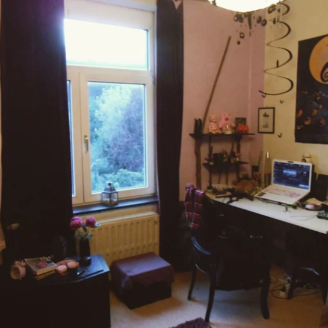 2016-2018: Période purple kingdom, le violet sous toute ses formes devient roi et j'en fous partout, ce qui est toujours le cas. J'ai commencer à peindre certains de mes meubles en noir et garde encore de rares touches de rose et lilas mais ça tend à s'effacer. Niveau look je fais du ménage dans ma garde robe pour ne garder plus que du noir et du violet plus de bordeau et de rose.
